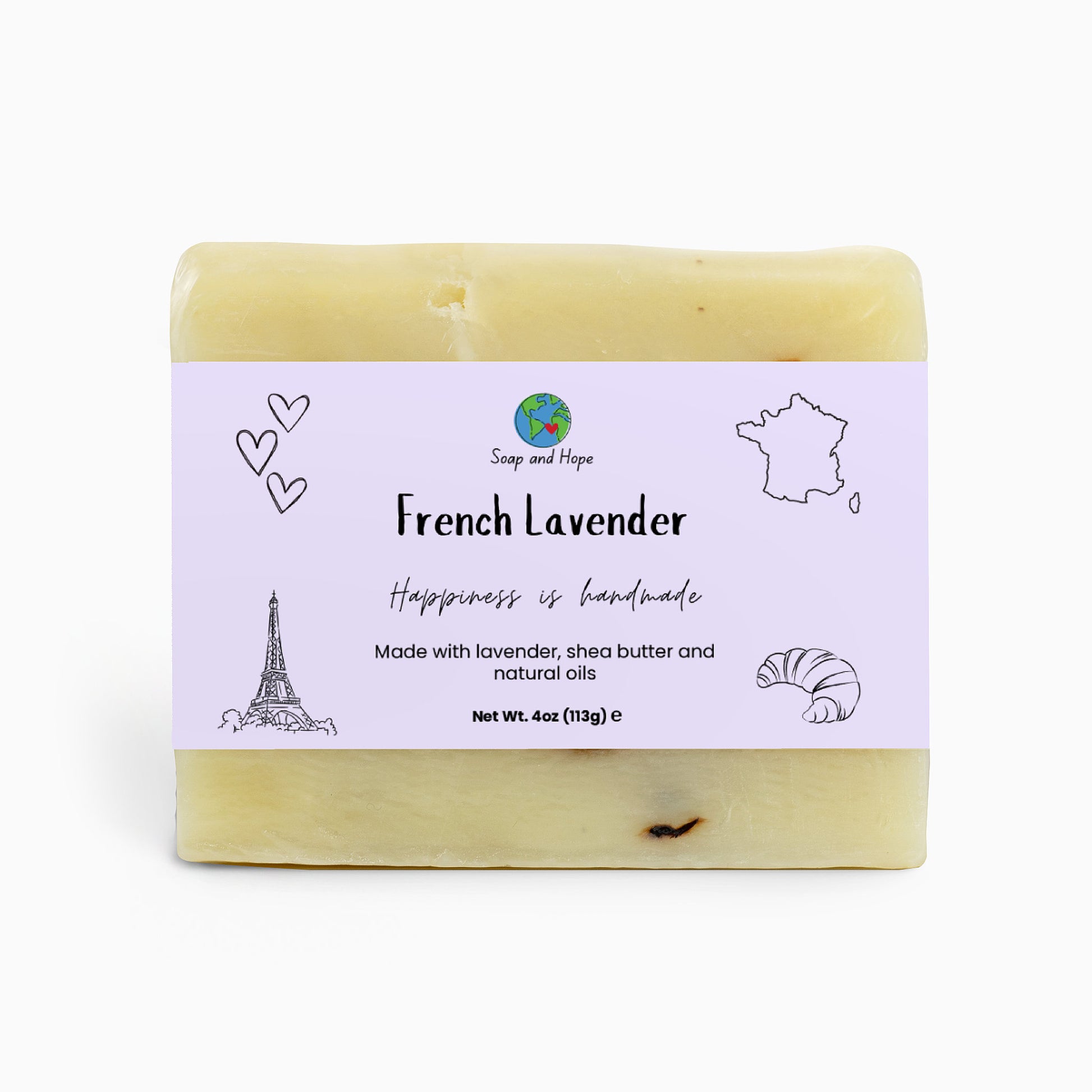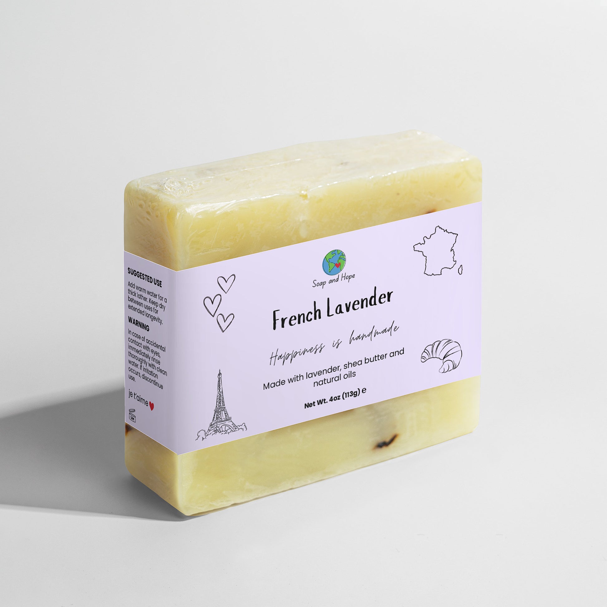 Let our age-defying French lavender soap transport you to the beautiful fields of Provence with its calming and beautiful scent. Rich in antioxidants, vitamins, and essential fatty acids, our handcrafted French lavender soap will help with skin elasticity and creating a youthful glow. This essential addition to your skincare regimen contains pure lavender oil and organic extra virgin olive oil, offering a gentle, nourishing cleanse that leaves your skin feeling soft, and looking youthful. This soap delivers a luxurious spa-like experience right in your home.